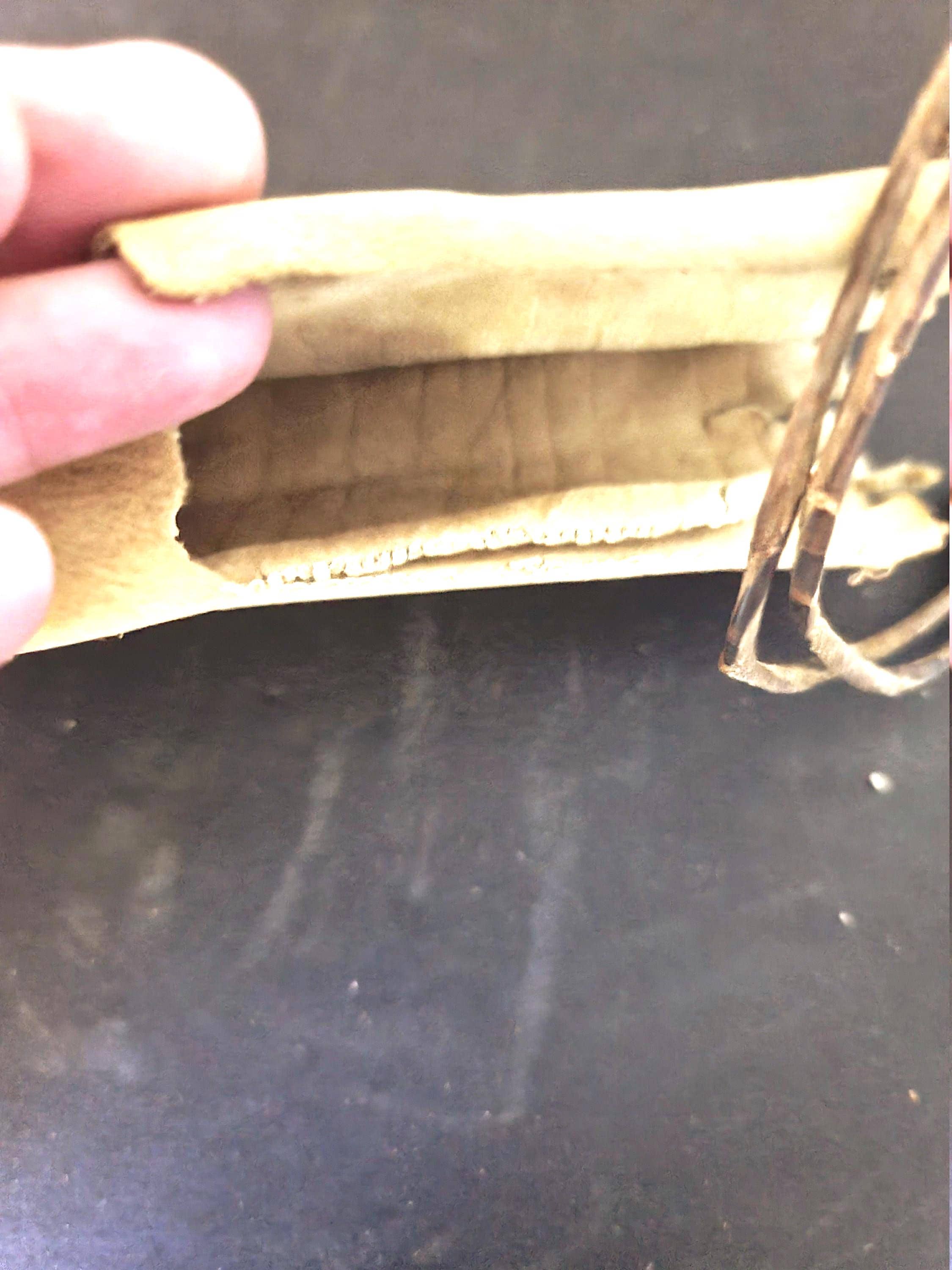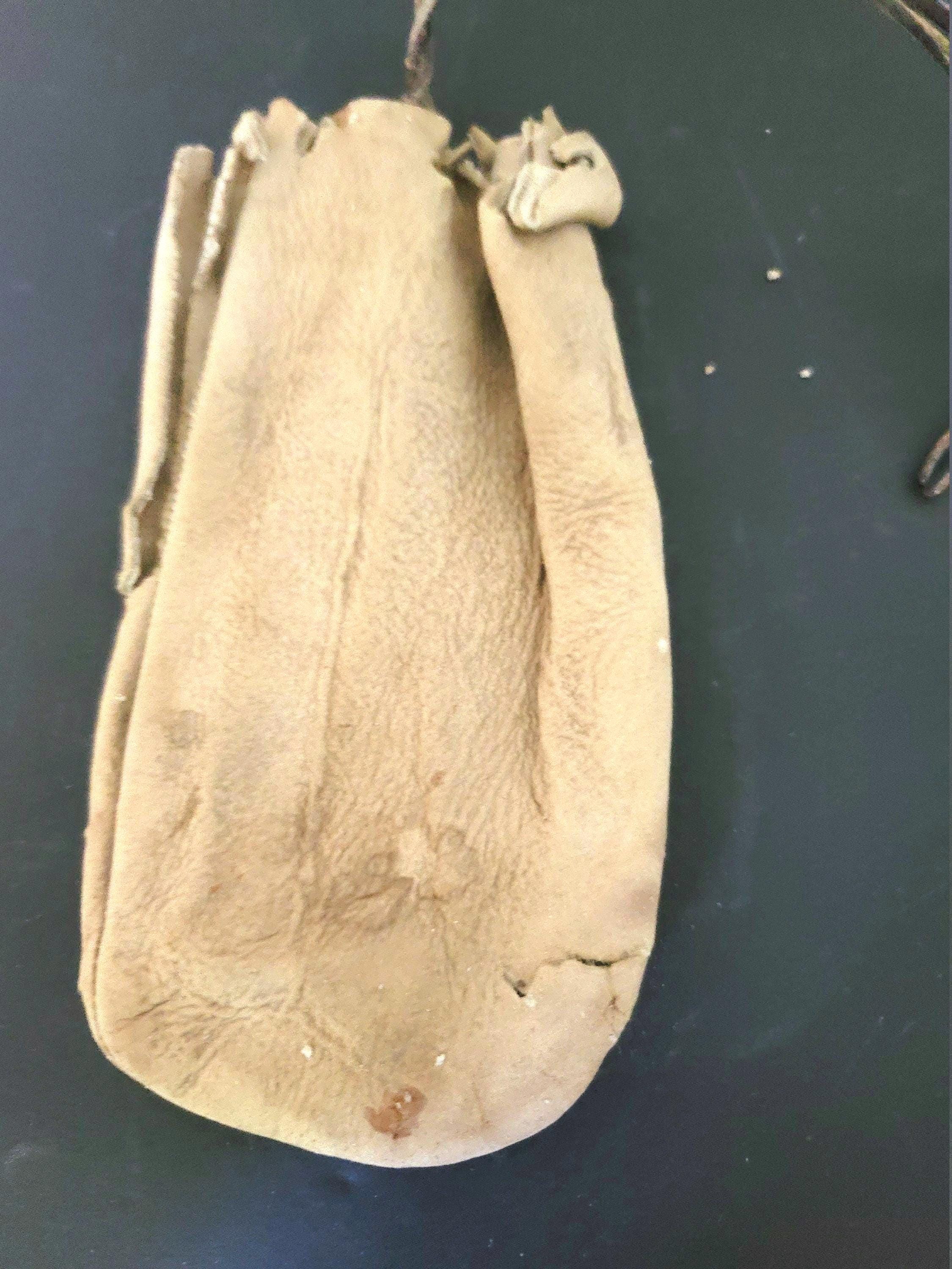 This is a very old, I believe from the 1850s- gold nugget pouch or poke as they called them then. It is made of buckskin and Wells Fargo and Company is printed on one side. It has a drawstring. It is pretty fragile, some of the holes holding the leather string to close it have broken and one side seam is undone half way down with a tear on the front about an inch wide. The backside has a small tear toward the bottom. It also has what appears to be sweat or water stains on it. It is 6 x 3". It is rare, I am unable to locate another like it. I may put it in auction if I don't get a buyer on Etsy. Free shipping in US.