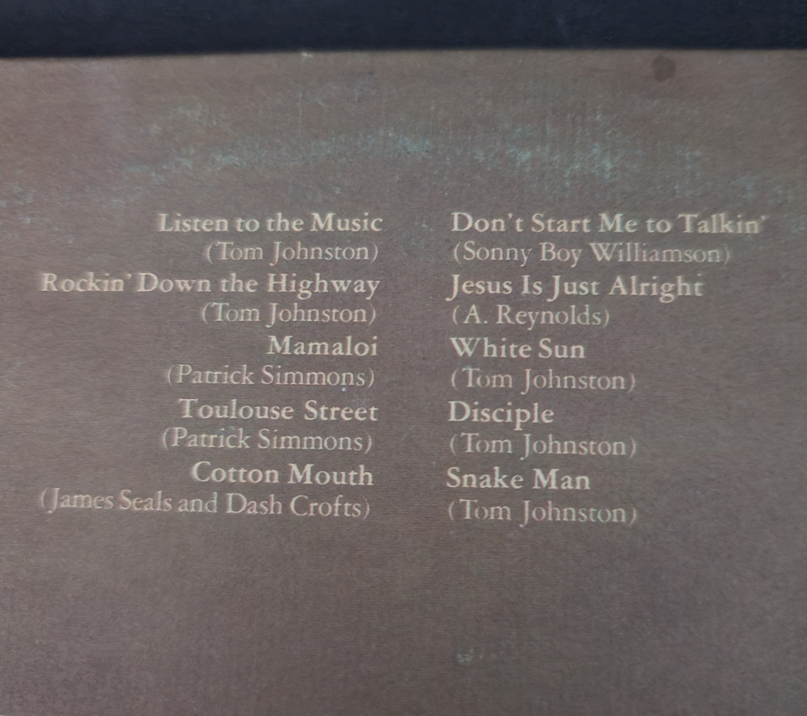 I love this album! Loved it way back when, when I was 14 and my Mom wasn't happy with the photo inside and trashed it! I listened to the entire thing and it is in great condition, no skips or anything. It is one album in a cover that opens up. Has a dust cover and great songs- Jesus is Just Alright- Listen to the Music- Cotton Mouth - Rocking Down the Highway - for a total of 10 songs.