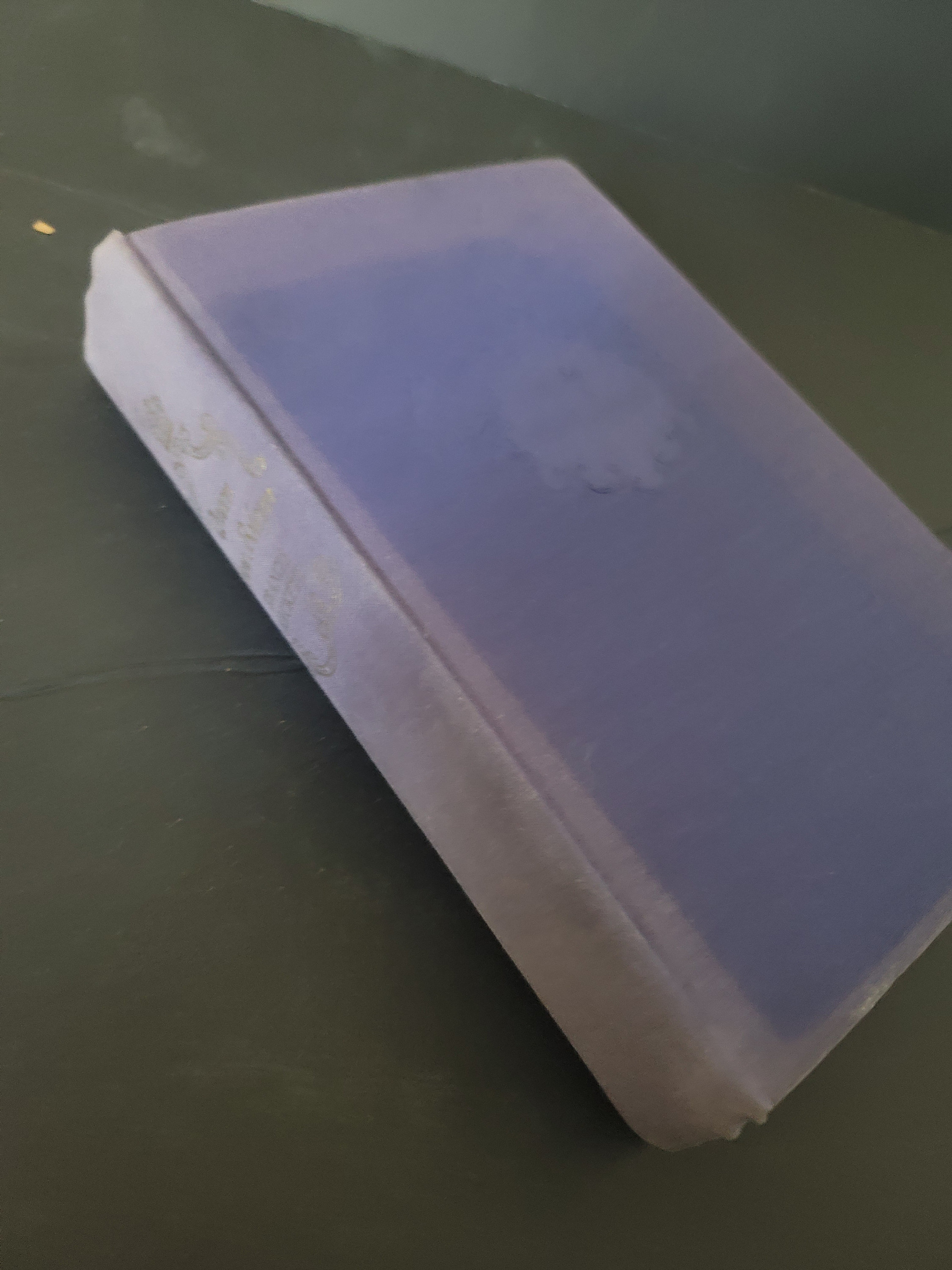 It has It has 486 pages, is hardback with blue cloth, which has faded, and is 8 5/16 x 5 3/4 x 1 3/4". It has deckled pages and is in really good condition.