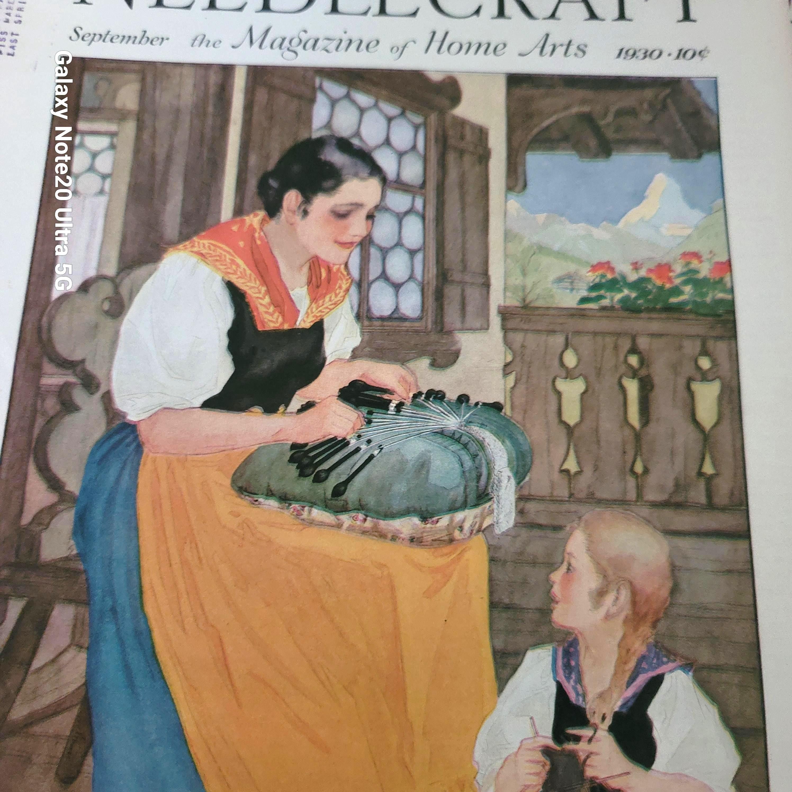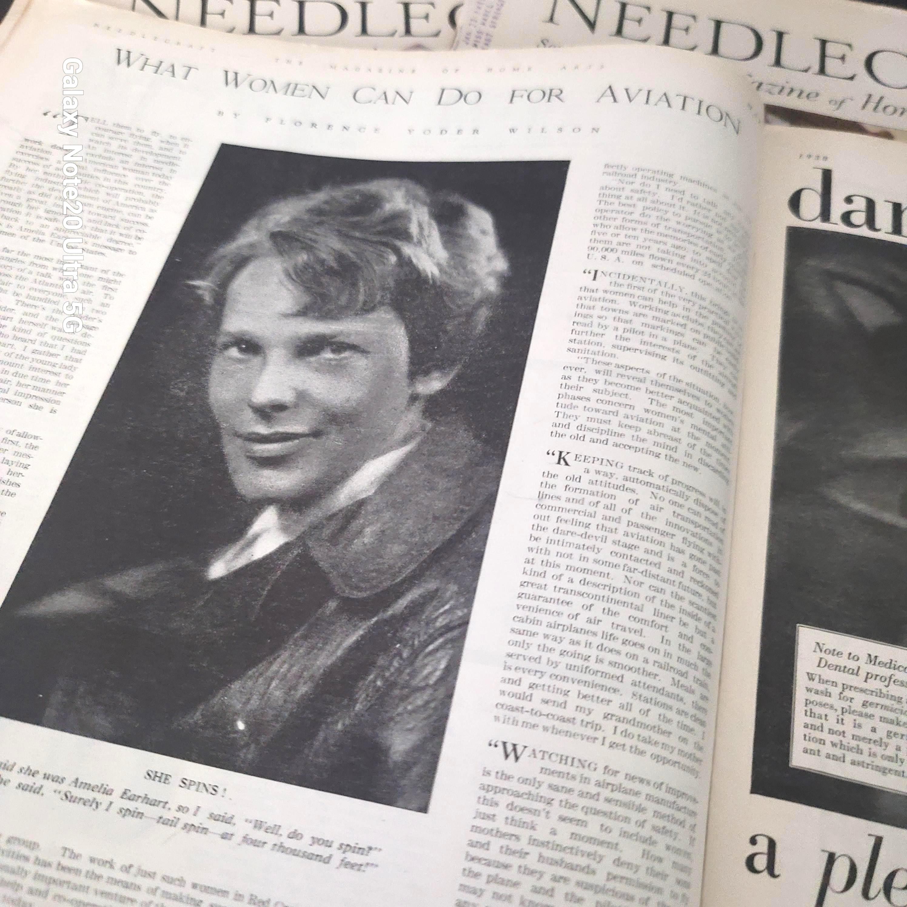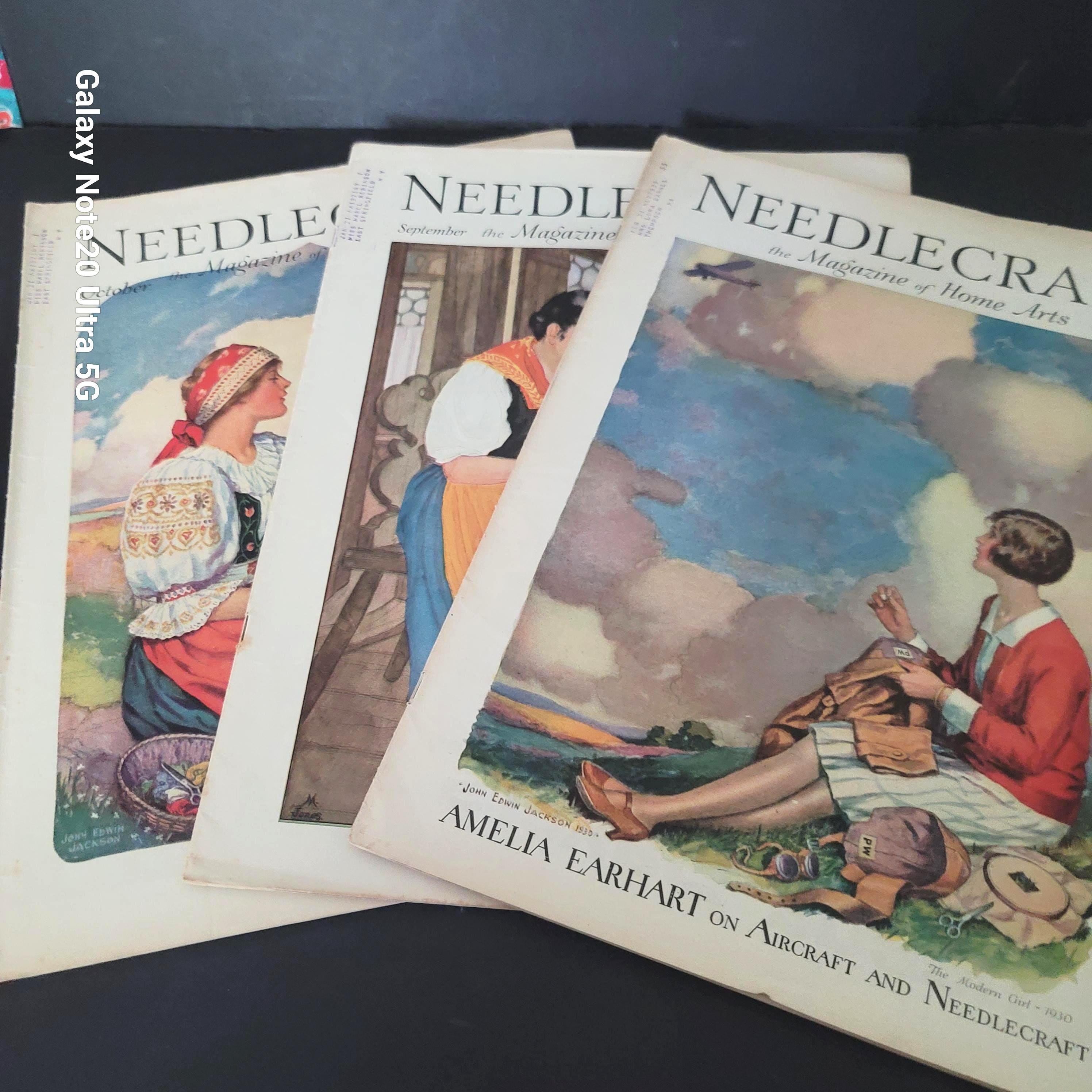 Ever wondered what are grandmothers and great greandmothers did? Set of 3 Needlecraft magazine- Oct, Sept and <ay 1930. They have colorful front pages as well as some color inside. They each have approximately 38 pages, All 3 are in great condition, covers secure. These have all kinds of things in them such as stories, making linens, stitchery and applique, recipes, fashion and interesting advertisements. One of these has a story "Amelia Earhart on Aircraft and Needlecraft". The paper is still soft and barely yellowed. What I really notice about these is that they do not have that mustiness that many magazines get. They are large, 13.25 x 10.25". Free Shipping! in the US.