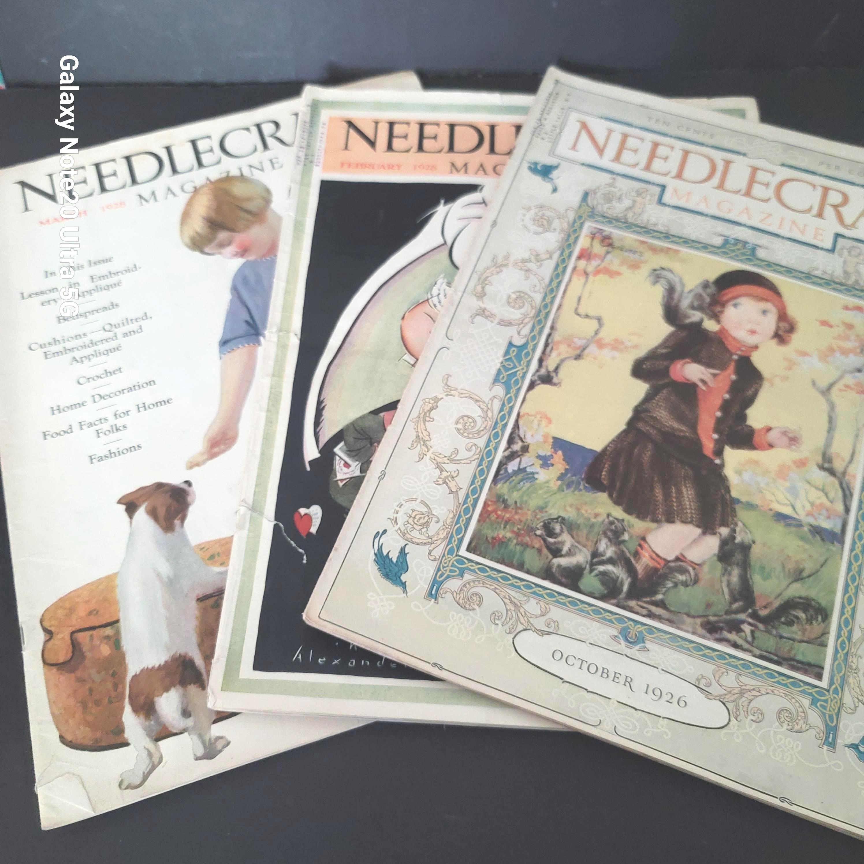 Set of 3 mags, Feb & Mar 1928 and Oct. 1926. They have colorful front pages as well as some color inside. They each have approximately 504 pages, All 3 are in great antique condition, covers secure. These have all kinds of things in them such as stories, making linens, stitchery and applique, recipes, fashion and interesting advertisements. What I really notice about these is that they do not have that mustiness that many magazines get. They are large, 13.25 x 10.25". Free Shipping! in the US.