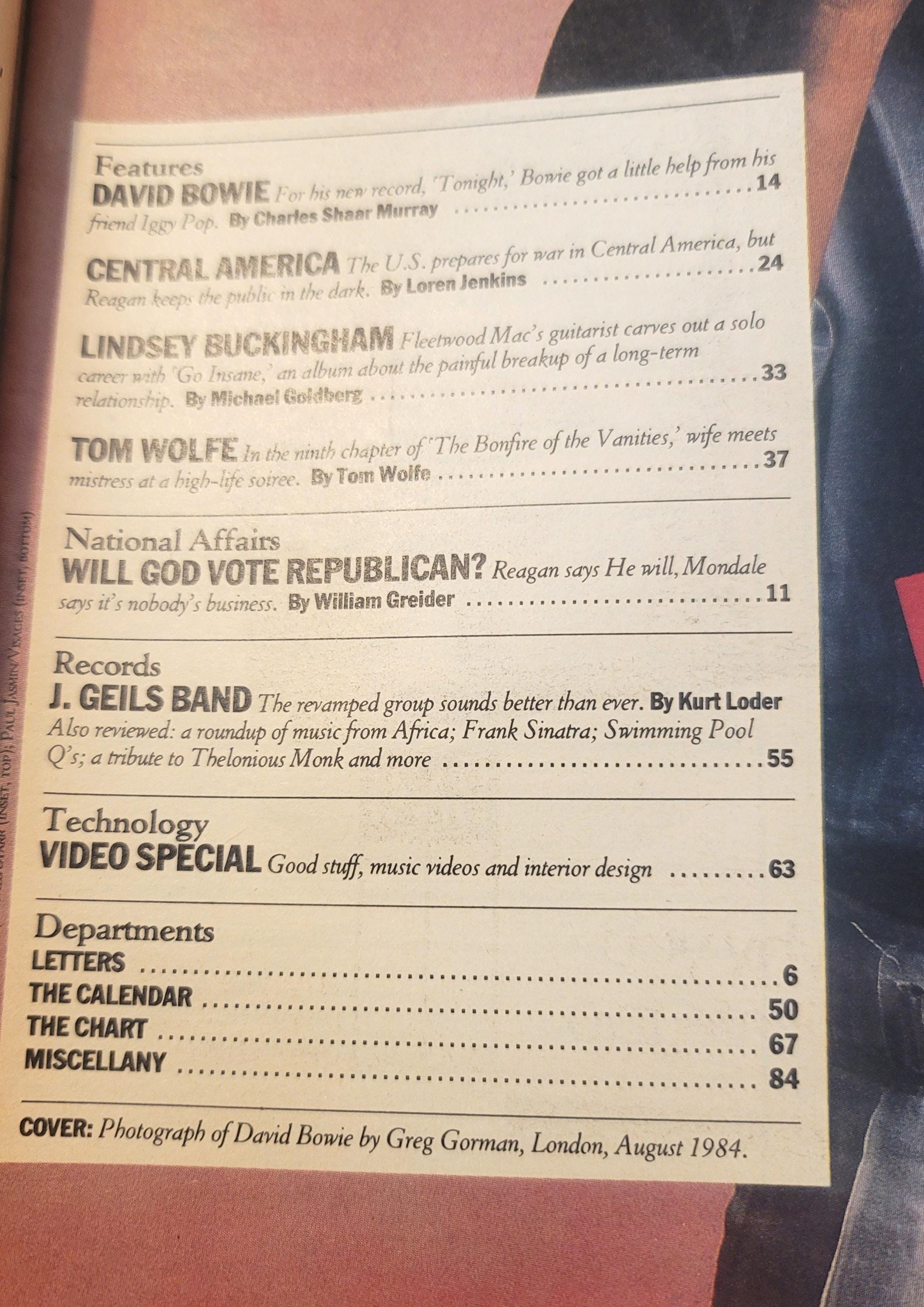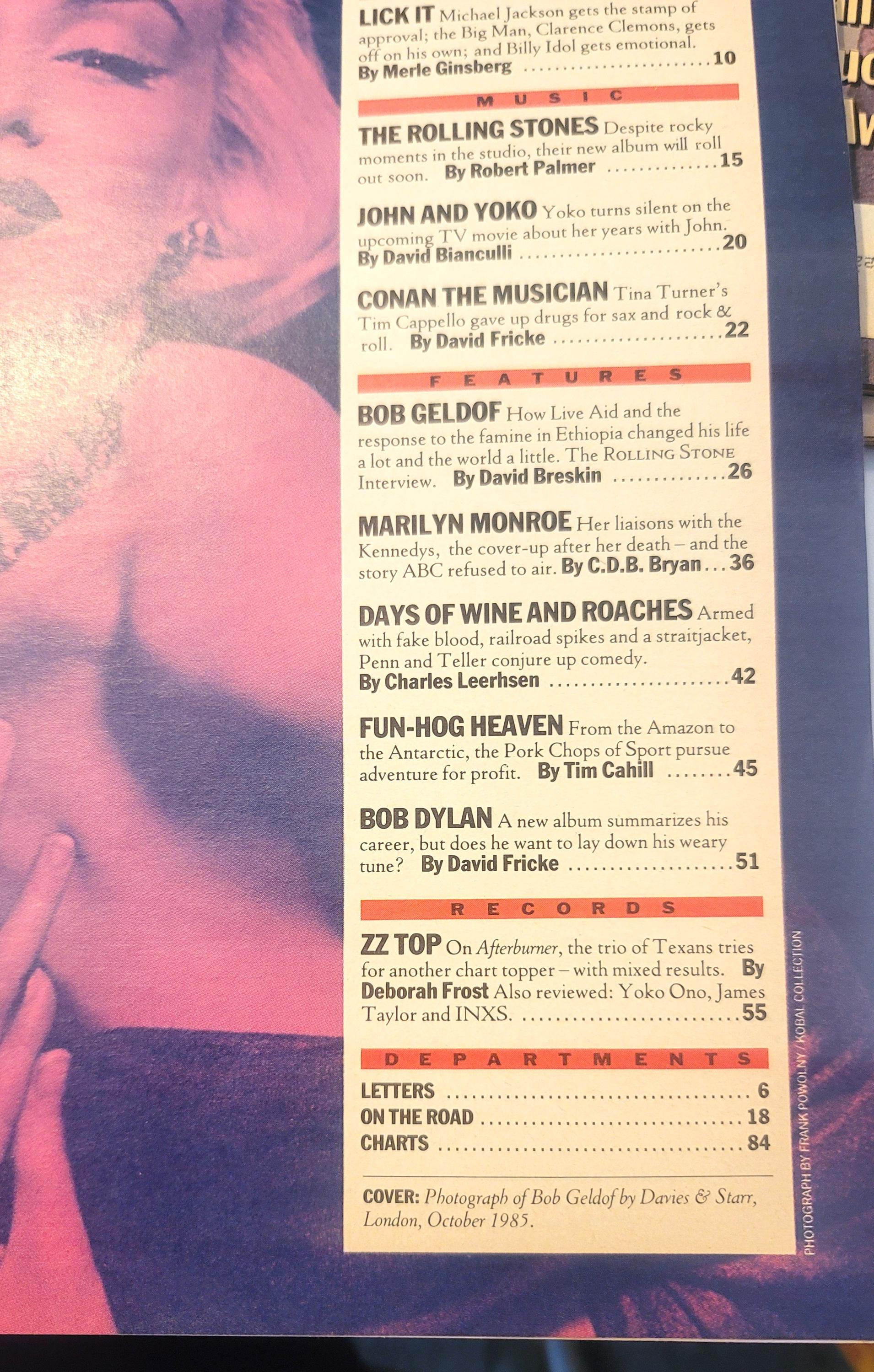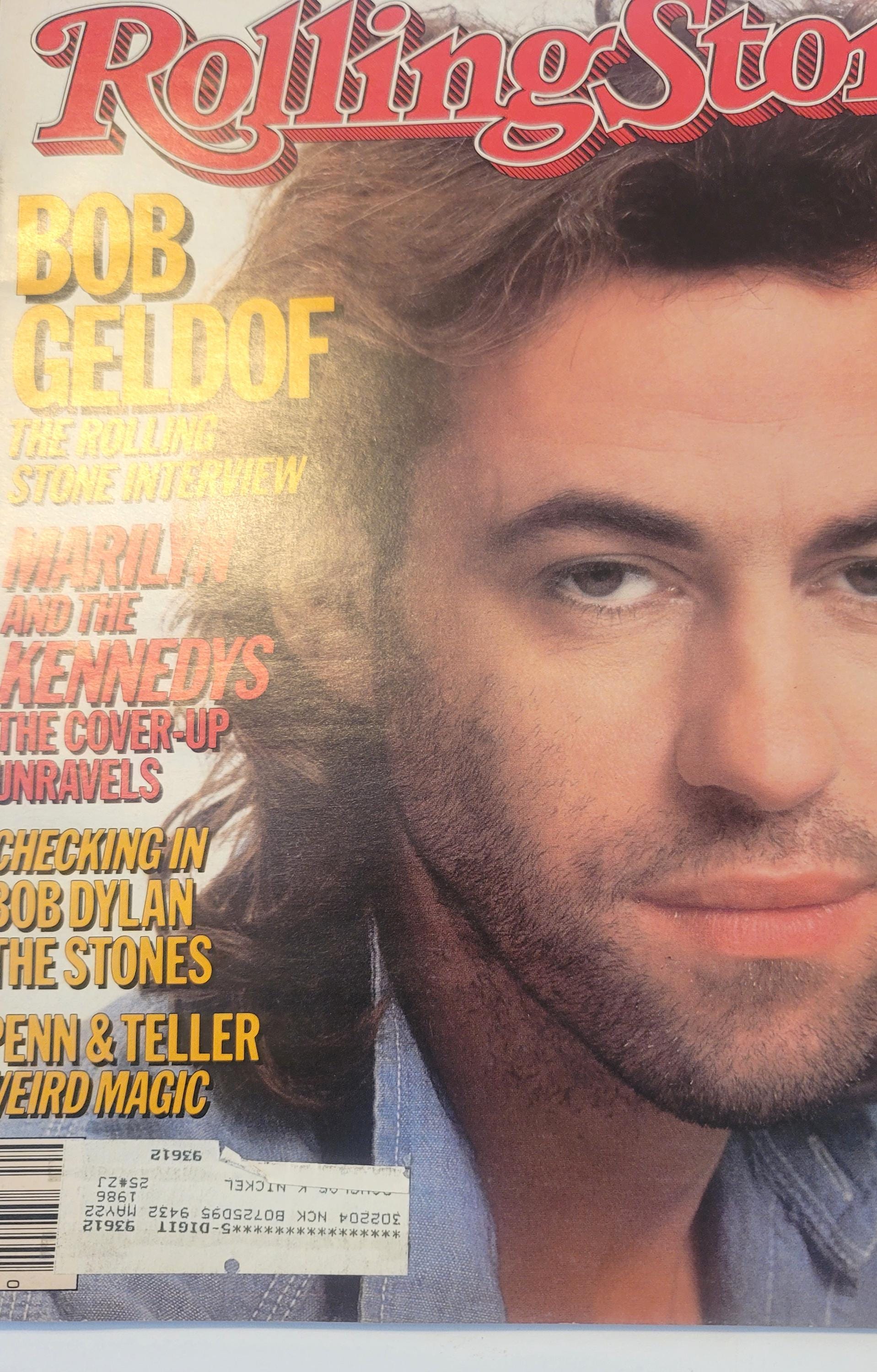 Here are 4 Rolling Stone Magazines from 1986. Covers are Huey Lewis, David Bowie, Bob Geldof and Bill Murray. All are in great vintage condition, all covers secure.