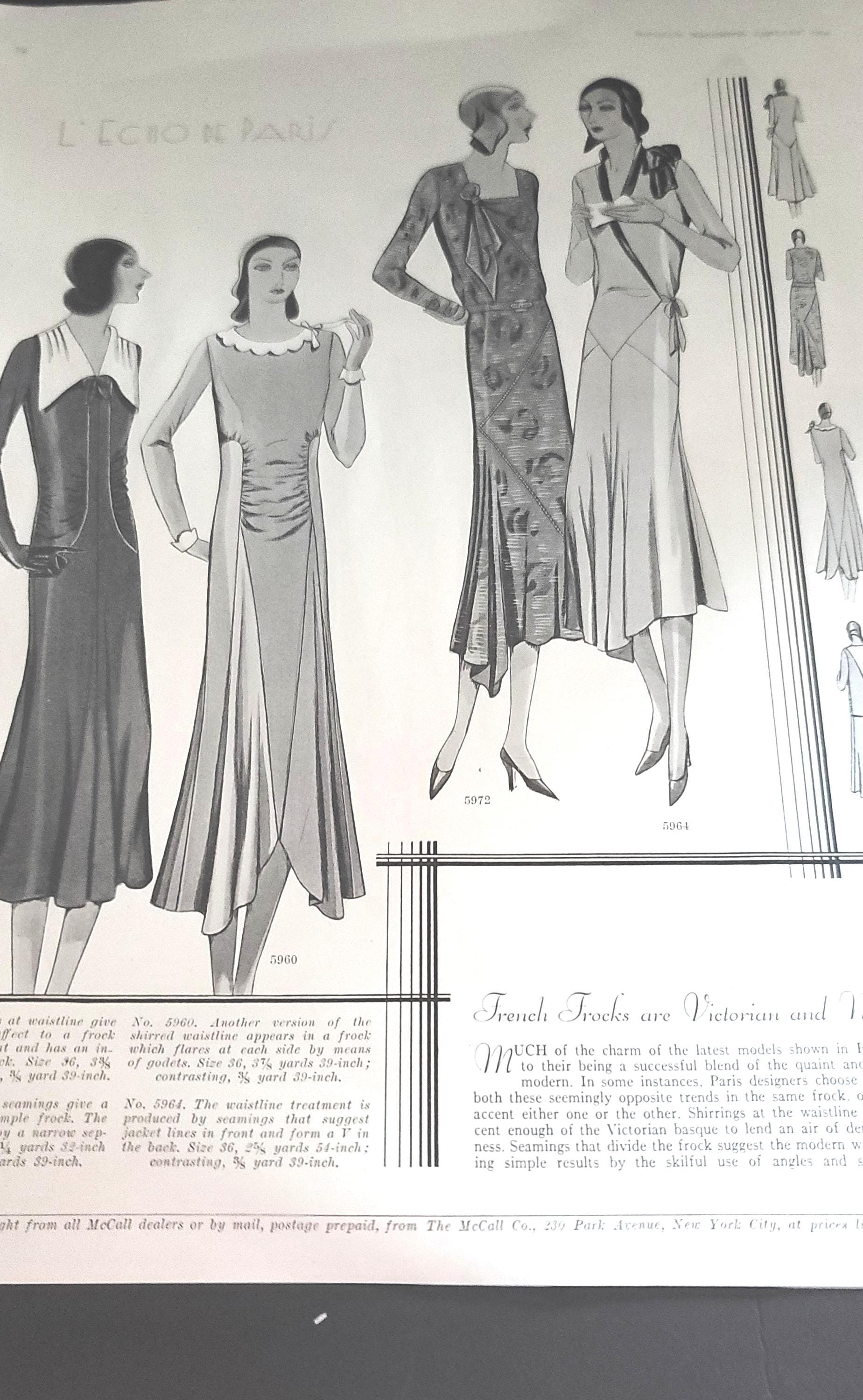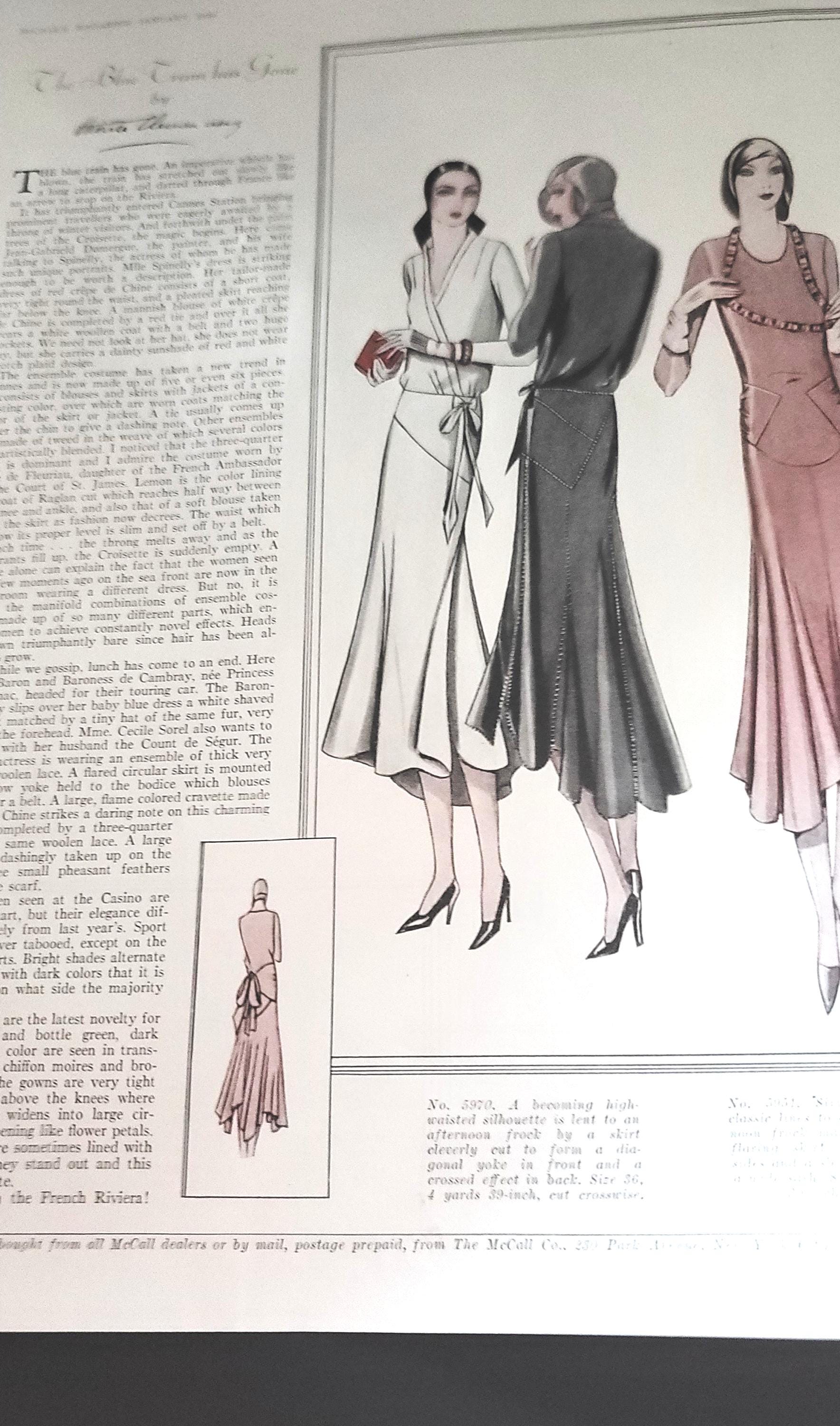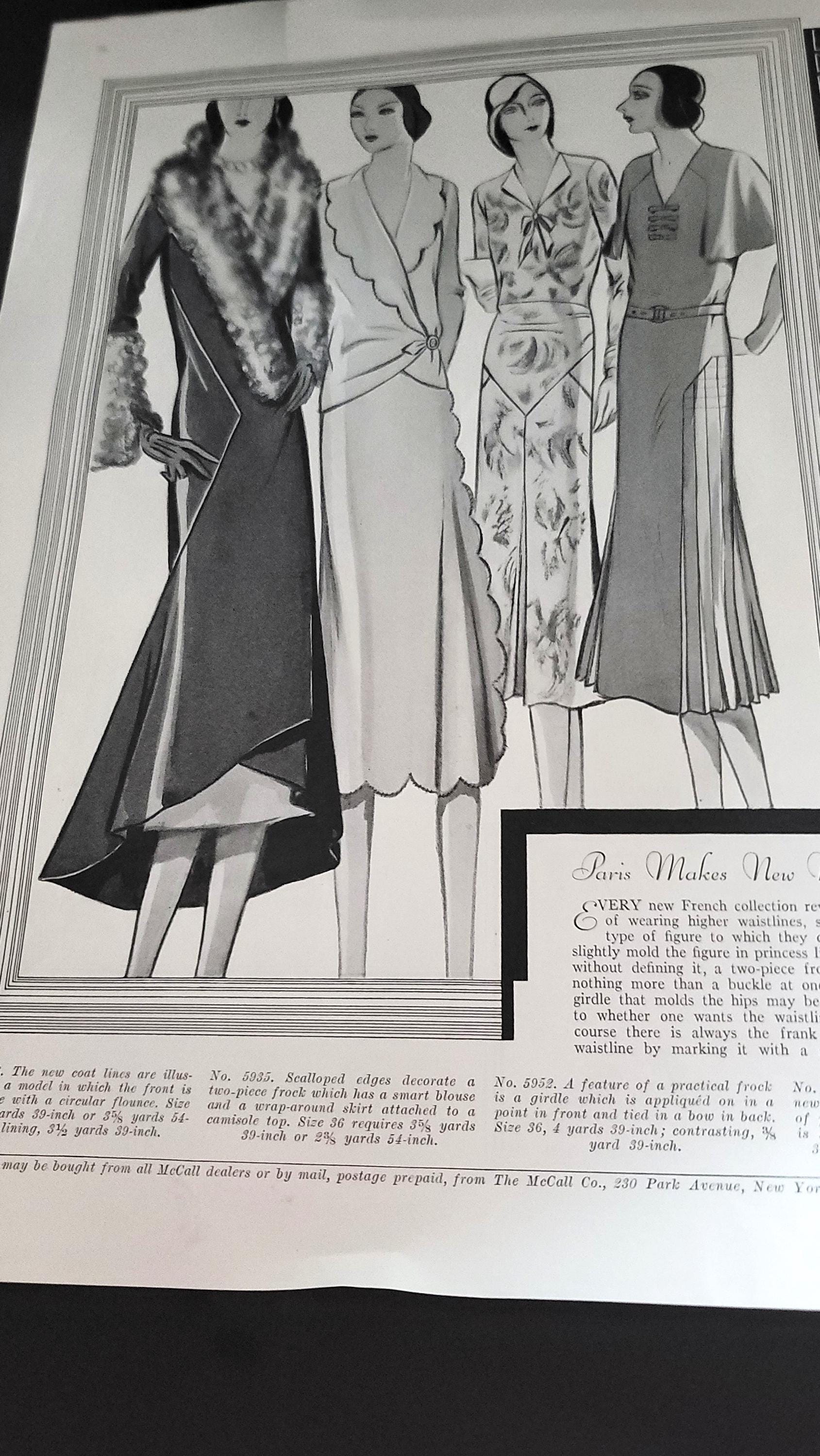 These are 4 pages from a 1930 McCalls magazine showing the fashion style of the time. These are printed on both sides but any of them could be framed. You could use them for art, for inspiration, collage or whatever you like! They are 14 x 10.5", the paper is in great condition. Still soft and pliable.