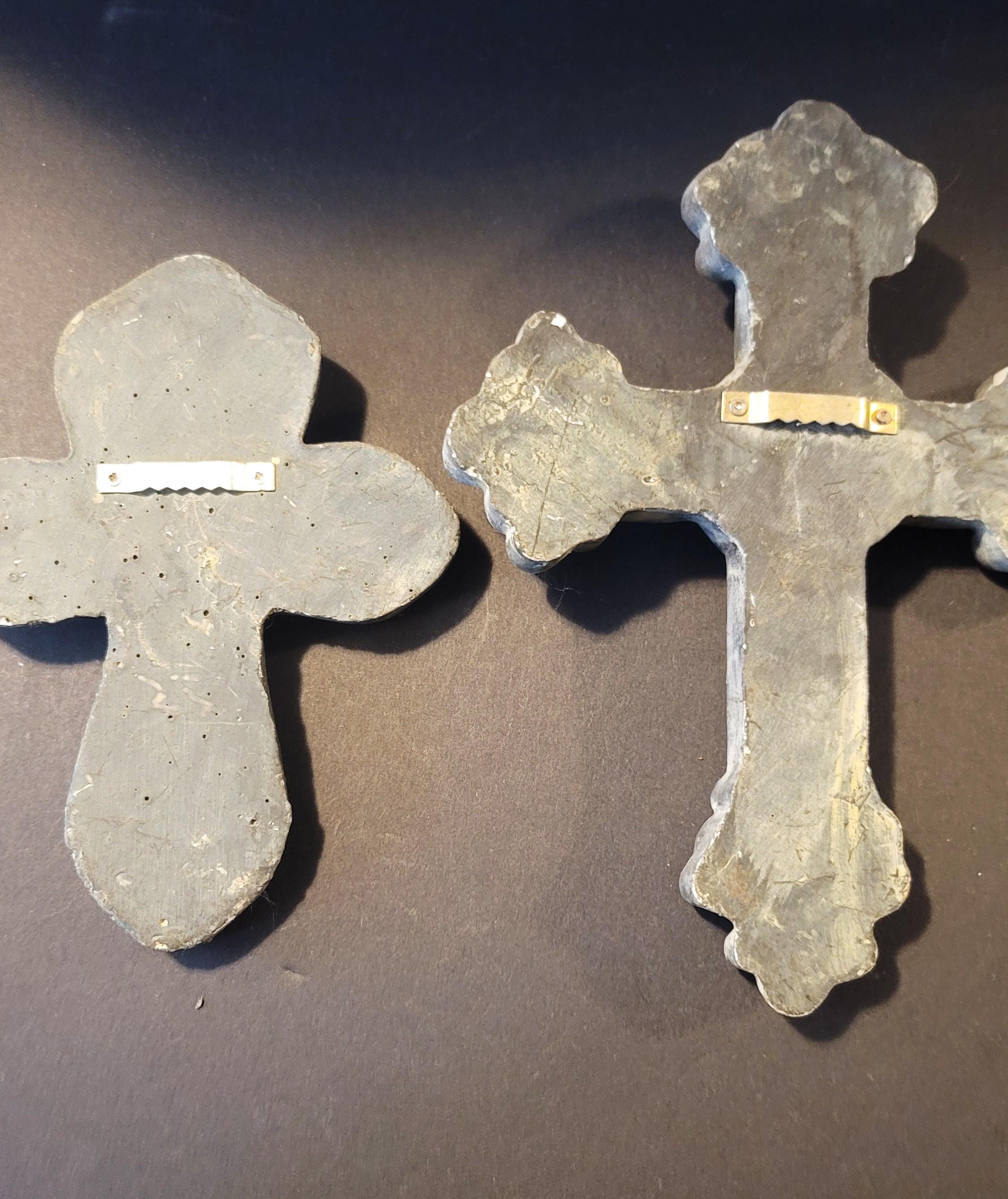 These look like carved stone but are resin, from the 90's.Each has a hanger on the back. Had a hard time with the photography this day- they are a grayish greenish color. Very detailed. the measurements ar 1. 7 x 5 3/8 x 3/8. 2. 8 x 5 1/2 x 1/2" 3. 9 x 7 x 3/4". Nice decor! Nice Gift!