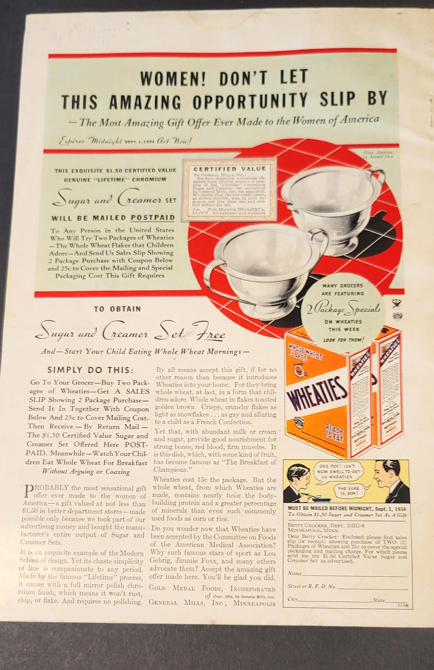 Here is a nice BH&G magazine from Aug 1934. It is in very good condition except for it is worn in the upper left corner and has a small dog ear on the other side. Pretty good since it is 92 years old. It is 12 x 8.5" and has 52 pages of homemaking tips, fashion, home decor and of course the cool vintage ads.