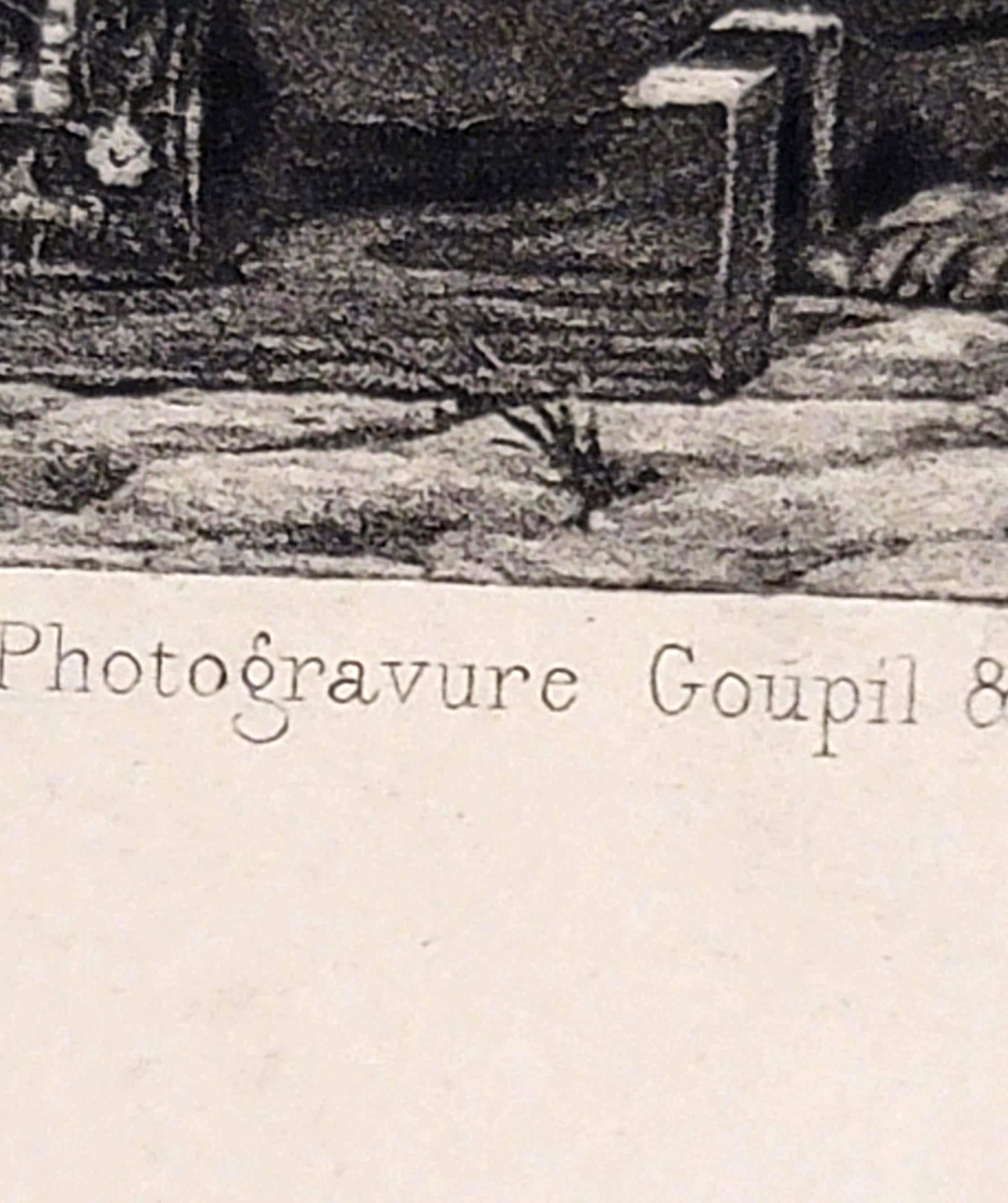 This is a photogravure that came out of a book and these were made by Goupil and Co around 1895. They were an international merchant of art and collectibles in France. they also engaged in the printing and publishing original prints. So this is a real deal. But it is a photogravure print. It is 11.5 x x 9" and the inset picture 6.75 x 5". Would look great framed and matted. Makes a great gift.