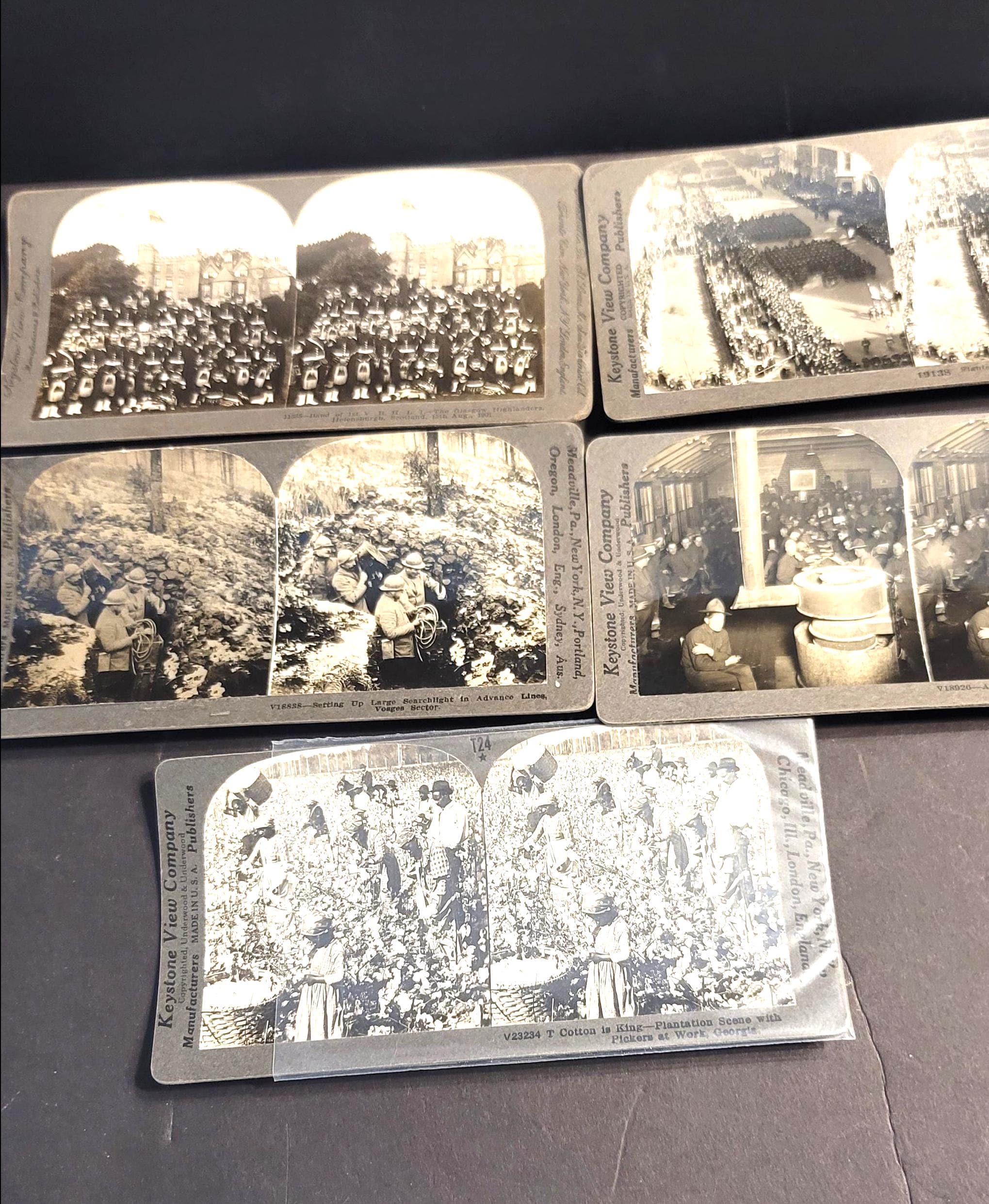 Here is a set of 5 antique stereographs, all black and white. They are in very good antique condition, made of hard cardboard.
