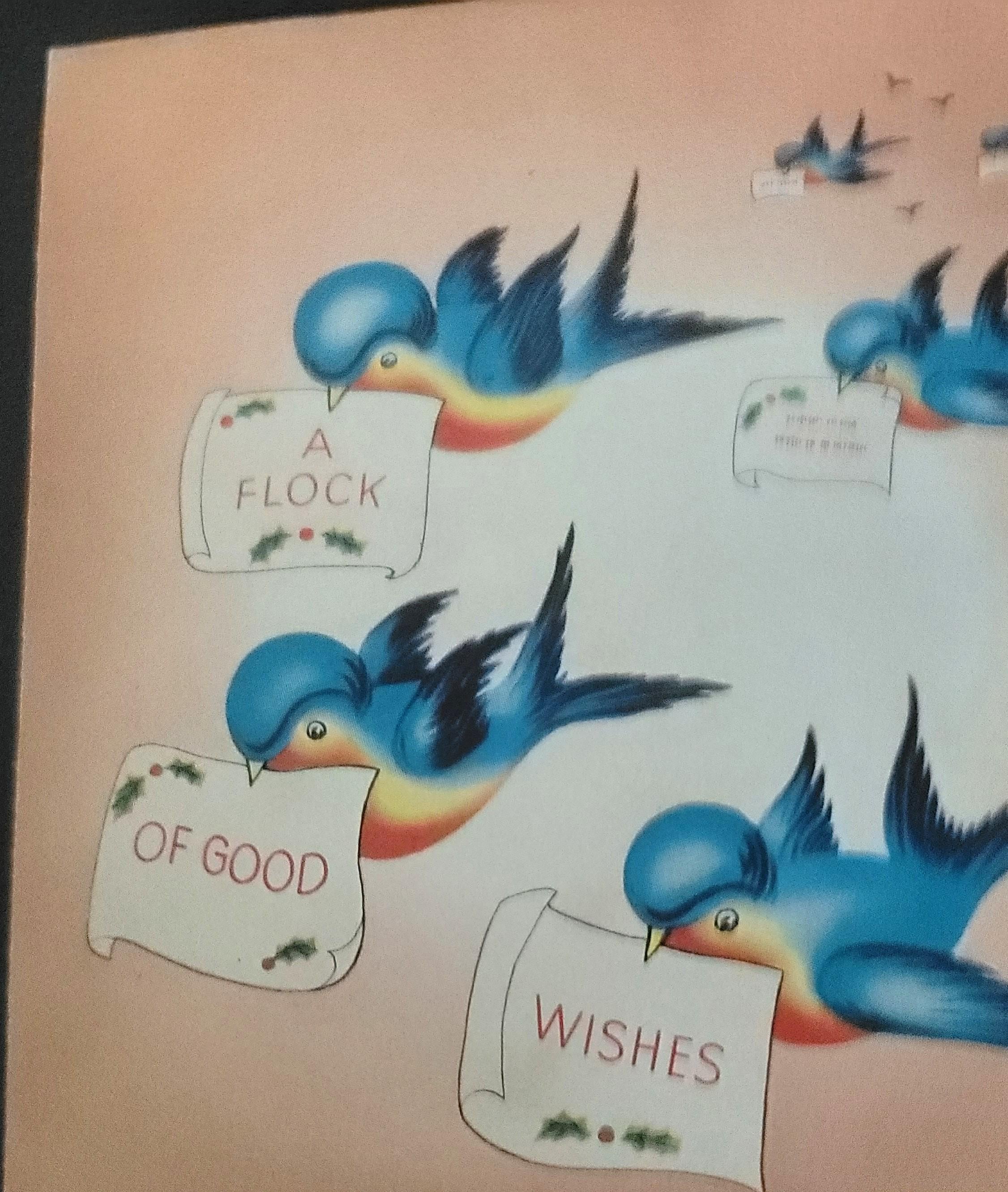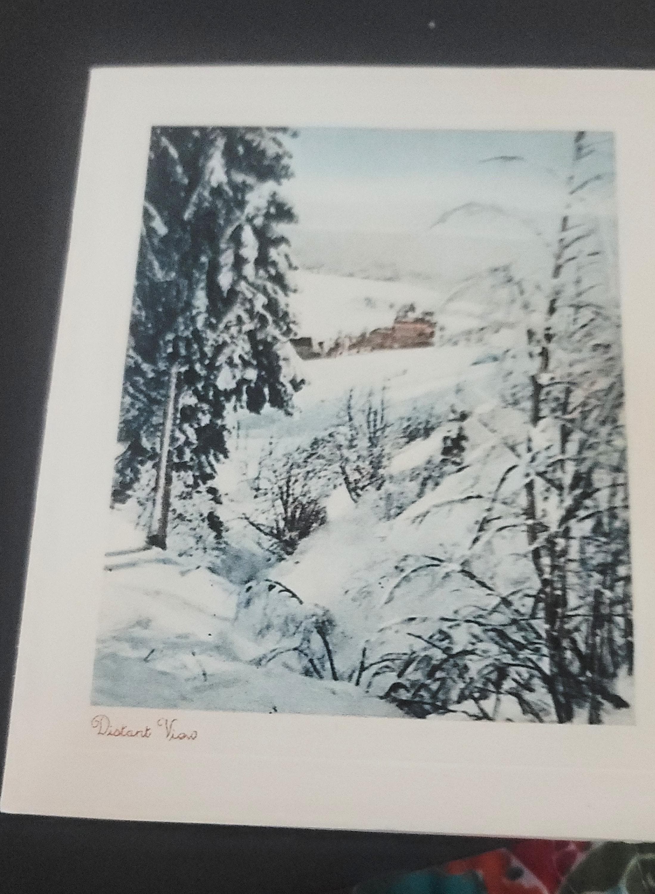Here is a few Christmas cards from the 40s that had previously been put in a scrapbook. All have been signed with ink except for one that was pencil. They were made on paper that is thinner than what cards are made of today, but are in really good vintage condition. The largest is 6.5 x 5.25" and the smallest, 4.5 x 4.25".