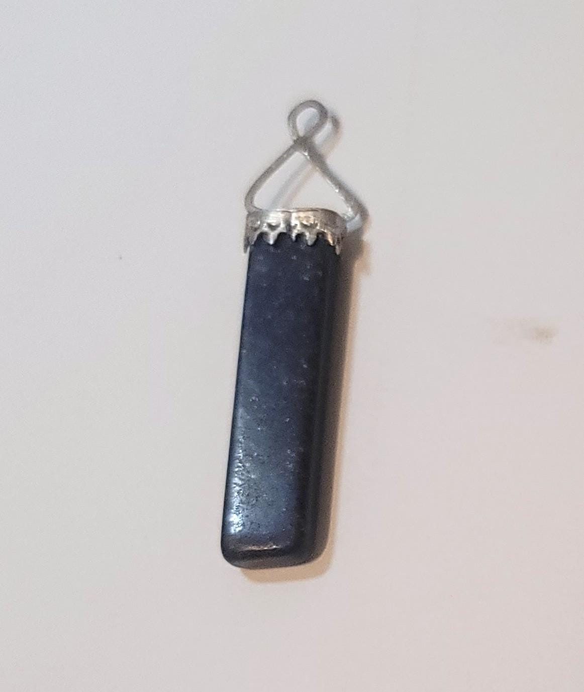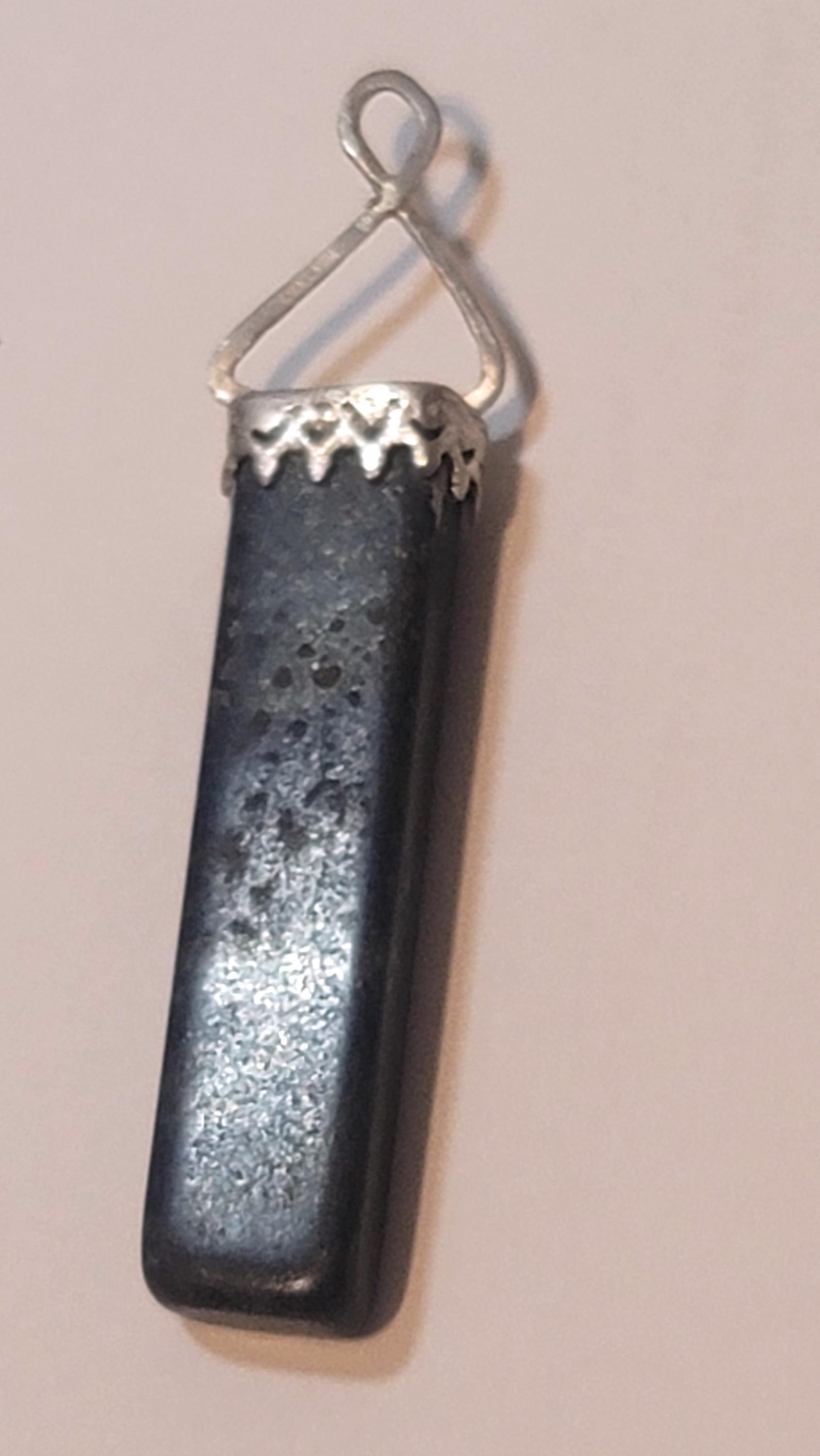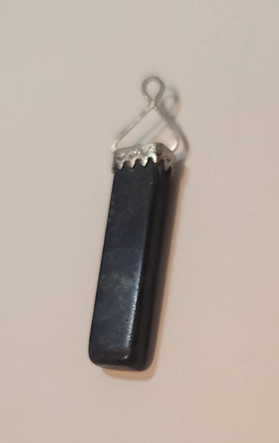 Here is a pendant I recently made with a rectangle lapis stone and sterling silver. I did not add a chain because many people like specific chains and so you can just add this to a chain you like as a charm or a pendant. It is 1.5" with another 5/8" for the bail.