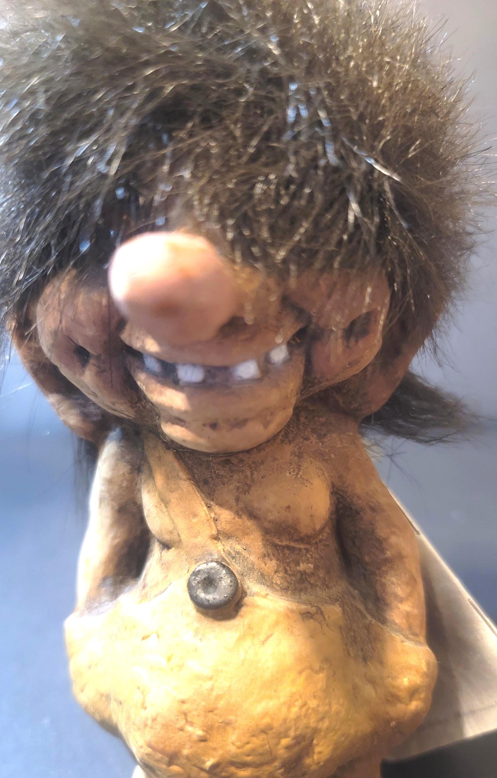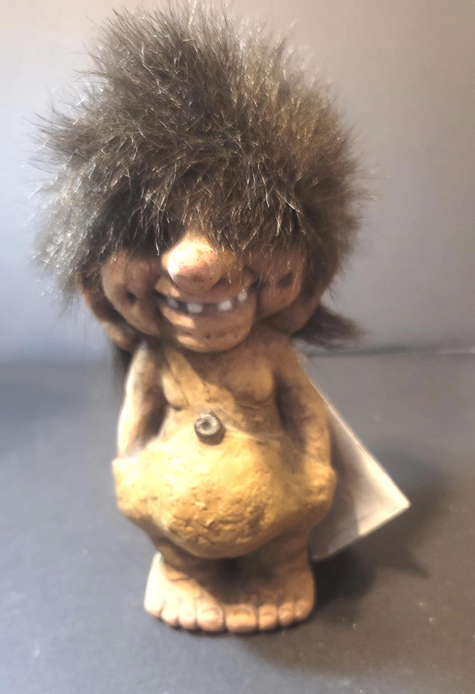Ole here has all of his original tags, one on the bottom and a little 46 page book which tells his story in several languages. He is 6.25" tall and is in very good condition. These are made out of latex-Nordic tree sap- and very sturdy. and then get darker over time. Ole was made in 1964 or 1965 by artist Tyrgve Torgensen who founded the Norwegian Company NyForm. Free shipping in US