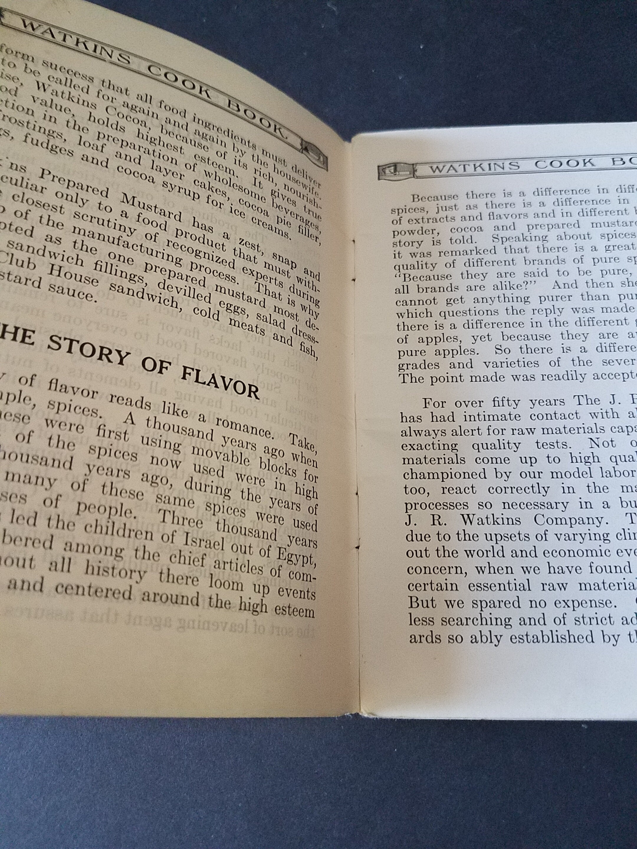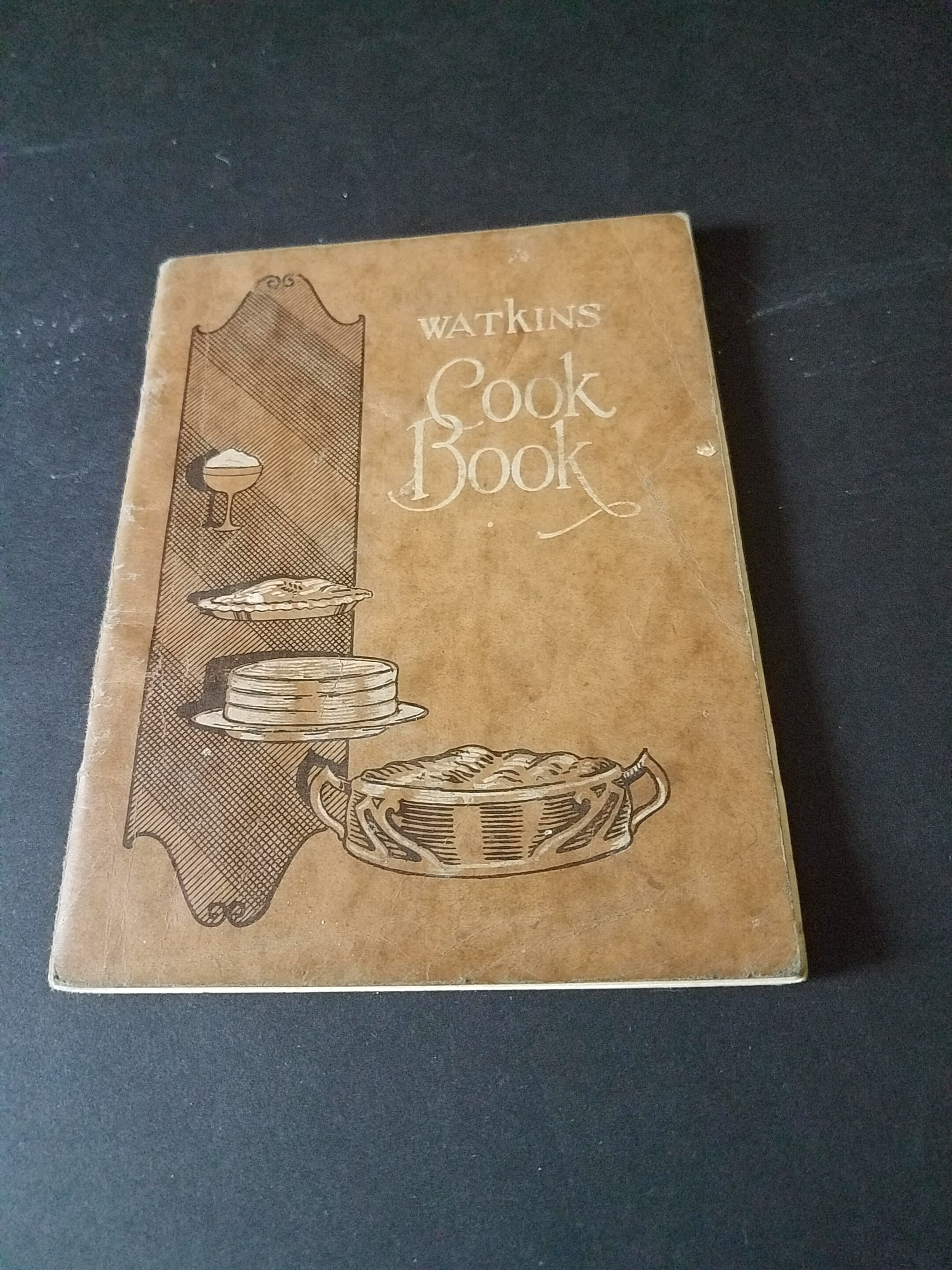 Nice little cookbook put out in 1925 by the JR Watkins company whose byline was "from ocean to ocean". It has 64 pages and includes recipes from every category as well as info about Watkins products- I love on page 6 how it says "the Watkins Dealer is your obedient servant."