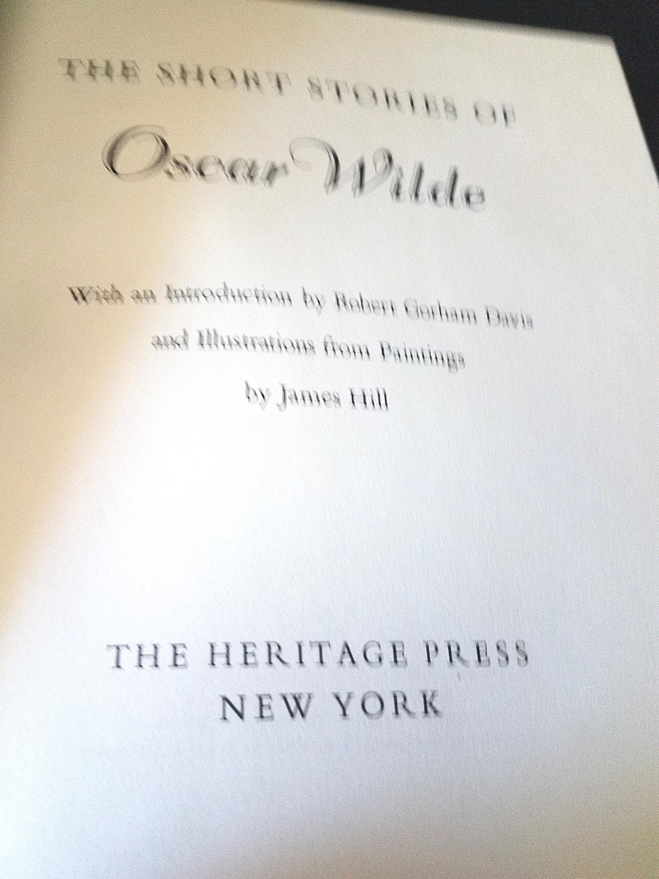 This is a collector book, put out by Heritage Press in 1968, containing short stories by Oscar Wilde. It has a dark pink hard linen covered cover and is in pristine condition. It comes with a gold cardboard box to keep it that way.