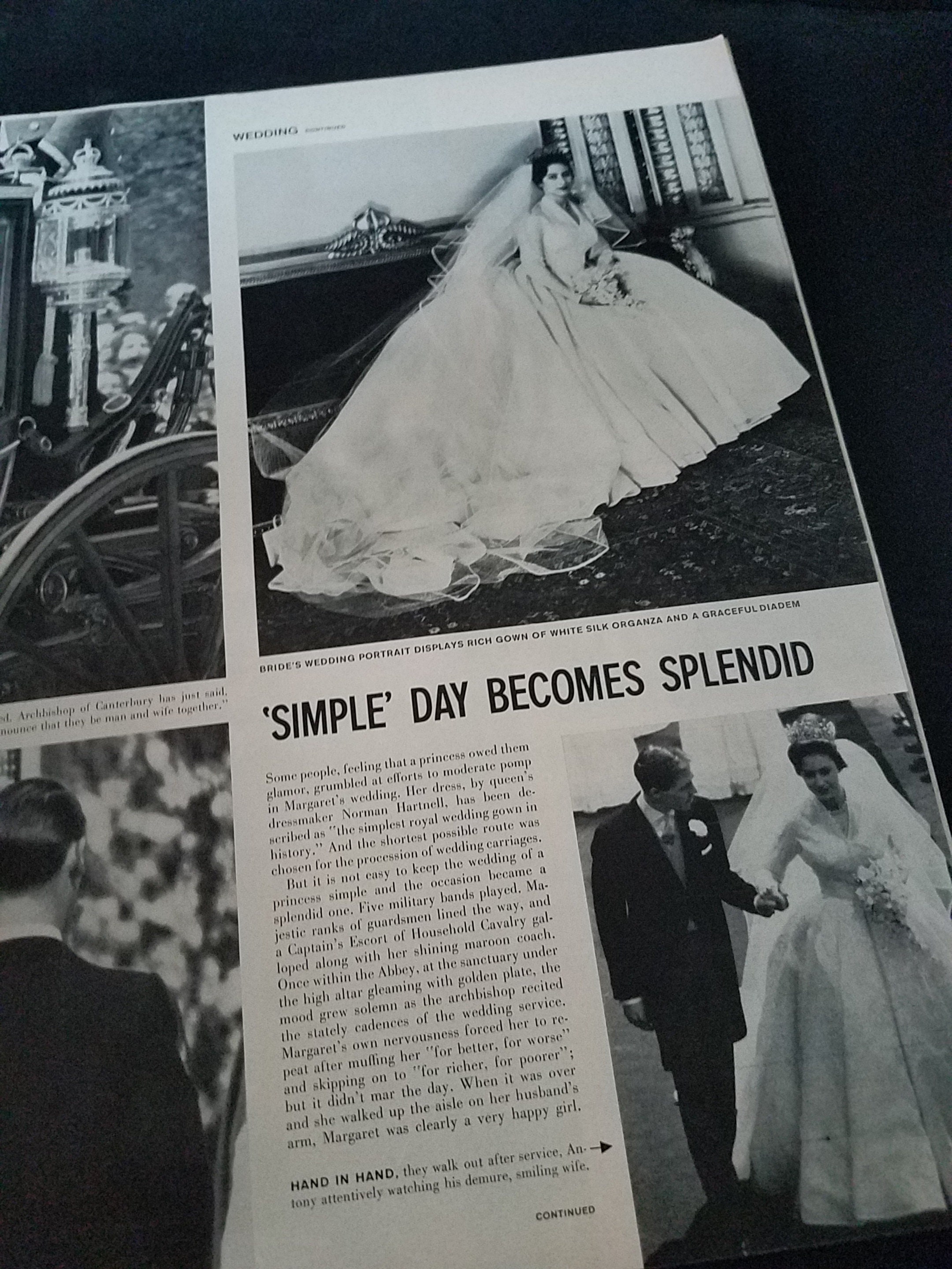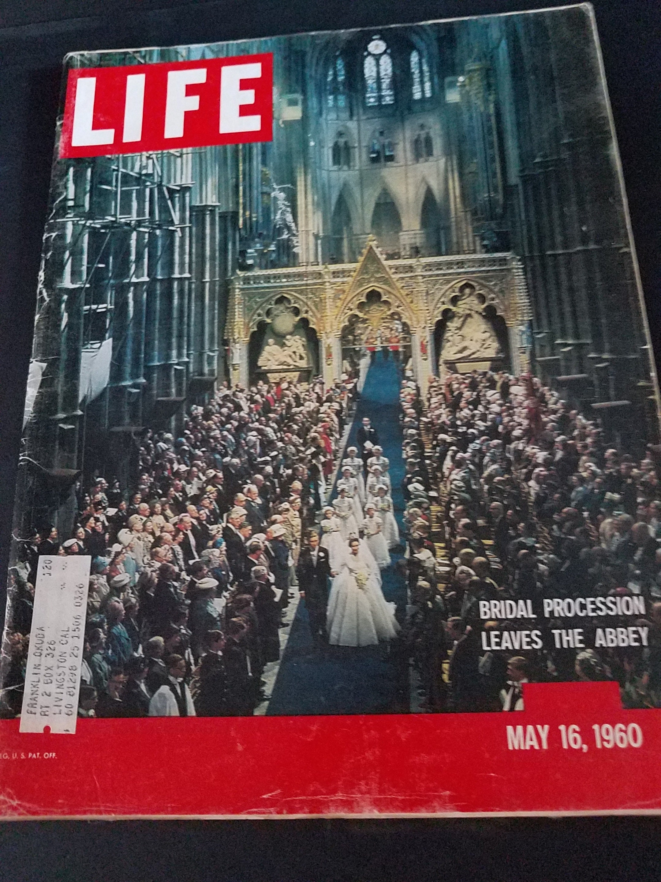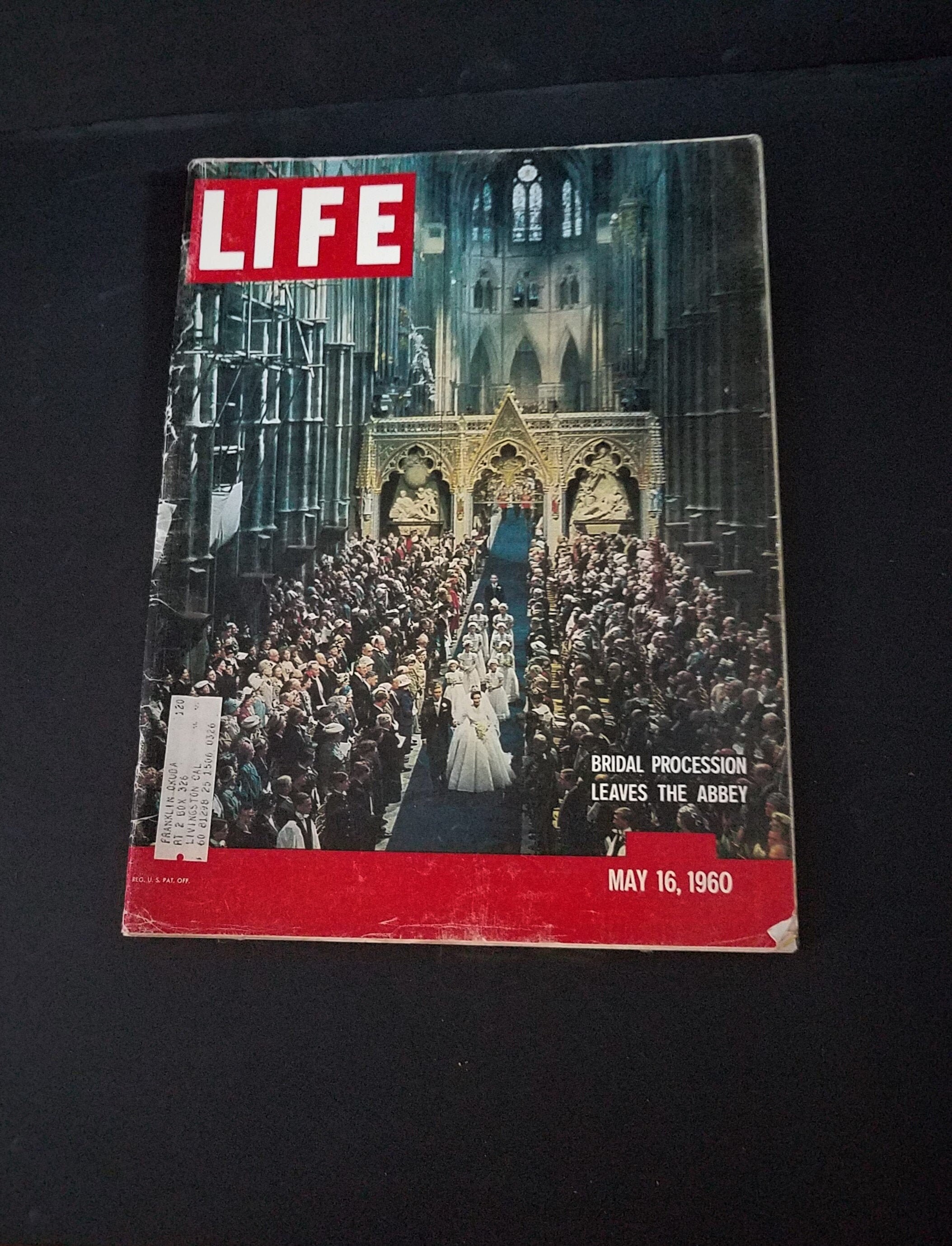 This is a pretty special life magazines- 60 years old, featuring the wedding of Princess Margaret to the commoner Antony Armstrong-Jones, photographer. It is a large magazine, as they were then- 14x10.5" with 148 pages. It has all that was going on then, with Lyndon B. Johnson, Elvis Presley and more. It is in good vintage condition, smells a bit musty as paper does when it gets old but the edges are barely worn, hardley yellowed and all in one piece.